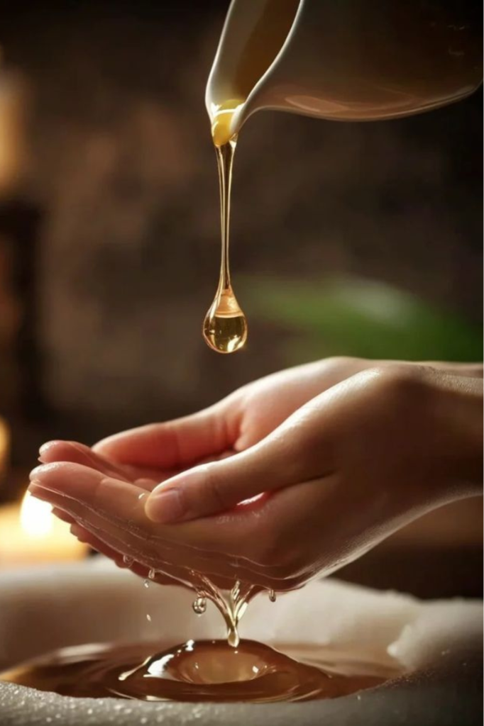 Shiroabhyanga to tradycyjny ajurwedyjski masaż głowy, karku i ramion wykonywany przy użyciu ciepłych olejów.